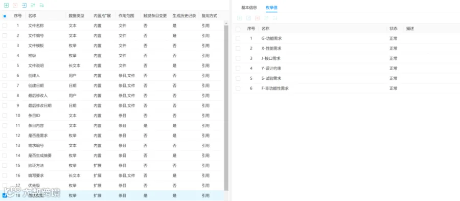 系统提供由管理员在属性库中定义标准属性清单,满足不同企业的产品和项目对需求属性的标准化要求,需求人员也可通过在需求文件中定义个性化属性,从而满足不同需求文件的差异性要求;