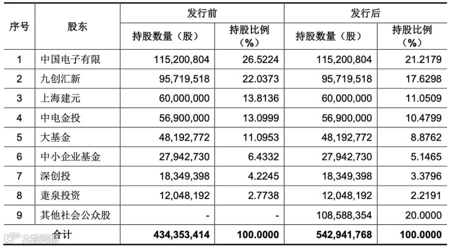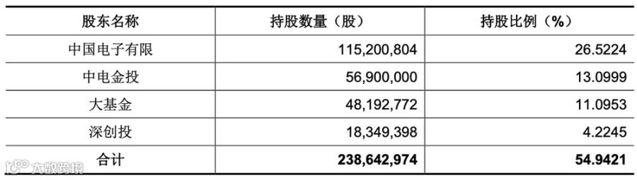 截至招股书签署日,中国电子有限、中电金投、大基金和深创投四家股东为国有股份持有人,具体情况如下: