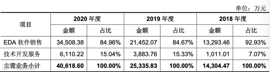 根据招股书,2020年我国EDA行业迎来持续良好增长,全年行业总销售额约为66.2亿元,同比增长19.9%,实现连续增长。其中,我国自主EDA工具企业在本土市场营业收入约为7.6亿元,同比增幅65.2%。
