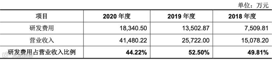 为保持自身的竞争力,华大九天保持了持续高比例的研发投入,其2018年度、2019年度、2020年度研发费用分别为7,509.81万元、13,502.87万元、18,340.50万元,占营业收入的比例分别为49.81%、52.50%、44.22%。