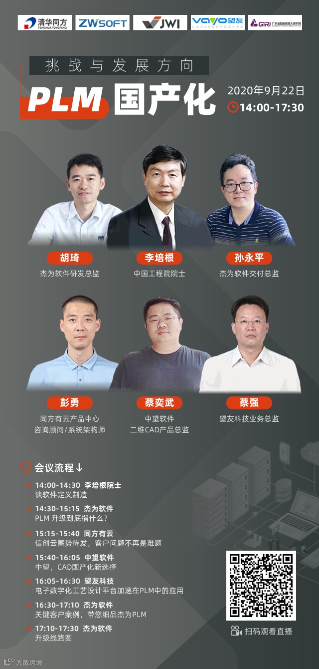 2020年9月22日14:00-17:30,杰为软件携手同方有云、望友科技、中望软件以及广智院,举办线上PLM国产化专题技术交流会。届时您可以同李培根院士及各位行业专家一起,共同探讨PLM国产化的挑战与发展方向。