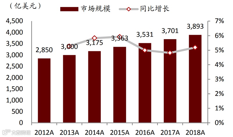 截至2018年底,全球工业软件市场规模达到3893亿美元,同比增长5.2%。