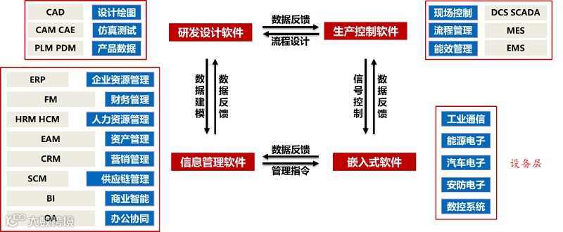 ▶信息管理类工业软件是基于企业的业务模型,是出于商科思维的管理类软件;