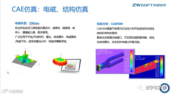 2. 介绍中望主打的三款产品:中望CAD、中望3D、中望电磁仿真软件的核心功能和研发实力
