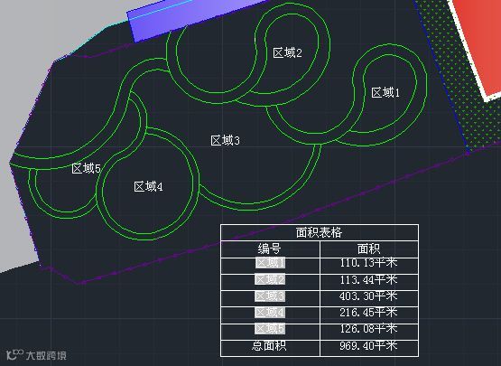 可以对封闭的区域和对象编号或面积计算,同时生成对应的面积汇总表,并可以将面积数据输出成文本或表格文件。