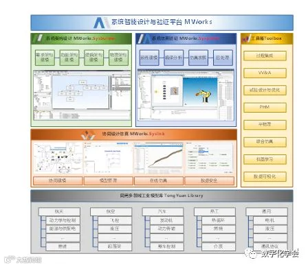 MWorks系统智能设计与验证平台由三大核心工具、一系列模型库以及一系列扩展工具箱组成,具体包括: