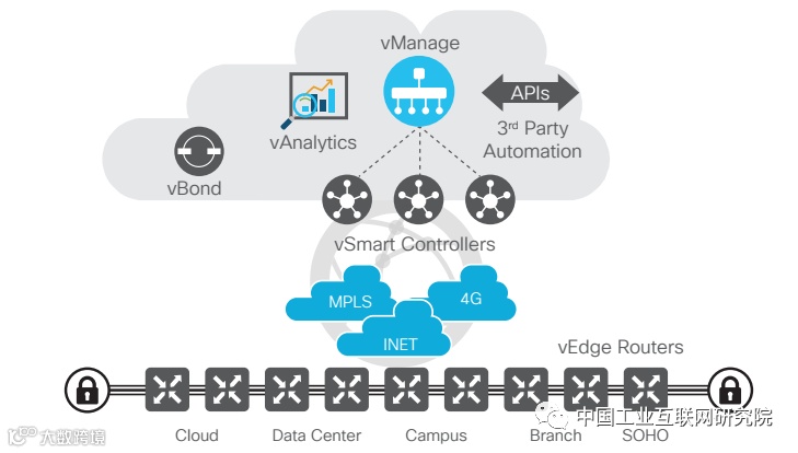 是指具有软件定义广域网、路由、网络安全和LAN/WiFi功能集成的集中式平台管理技术,可高效便捷的将网络的控制平面与数据转发平面进行分离,通过集中控制器中的软件平台对底层硬件的可编程化控制,实现对网络资源的柔性调配。在工业互联网内网建设过程中,该技术可利用网络虚拟化方式摆脱硬件对网络功能的限制,以低成本实现高灵活性的网络资源优化控制。