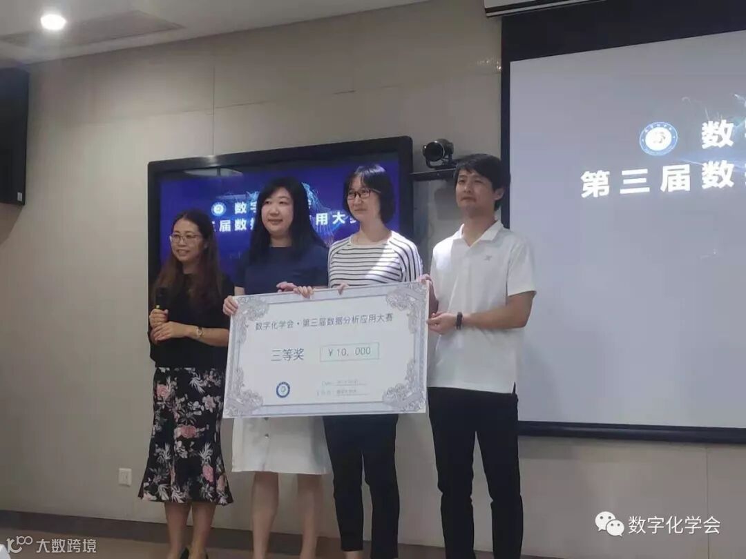▲第三届数据分析应用大赛决赛三等奖颁奖时刻,右一为季军队伍——万水千三队