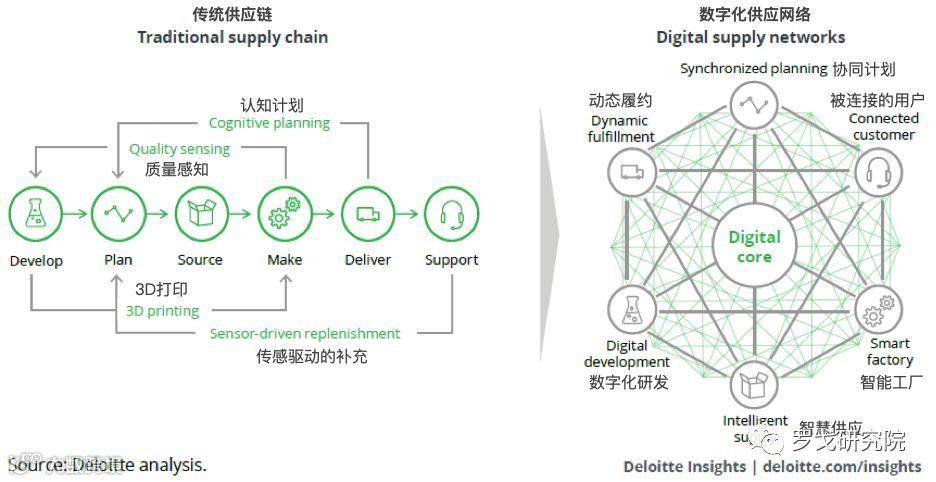 图3:从传统供应链向数字供应网络的变革(来源:Deloitte 德勤)