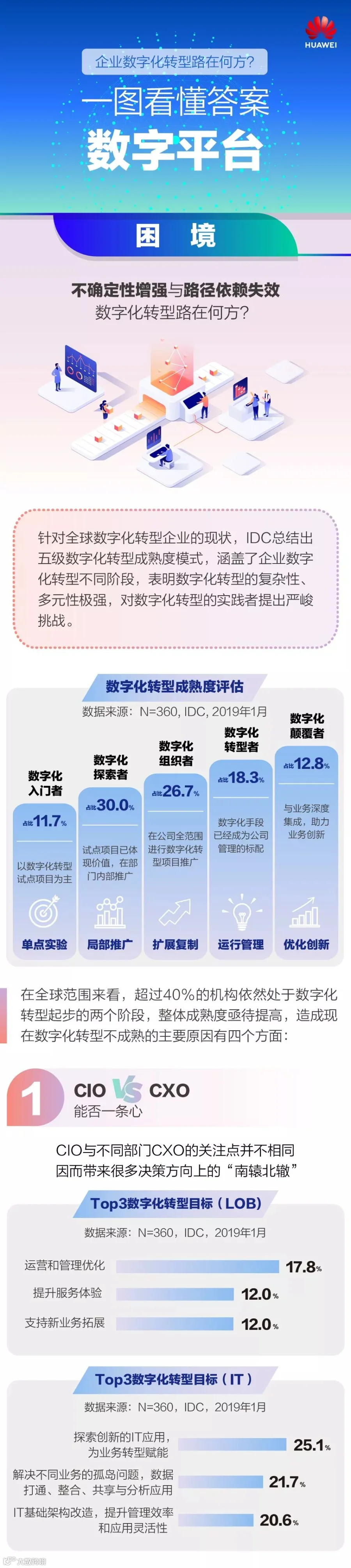 积极拥抱数字化,是企业转型的必经之路。IDC认为,数字化转型是全方位的组织业务转型,从目前阶段看,亟待解决的是数字化能力提升。那企业究竟该如何做?IDC与华为联合发布白皮书《拥抱变化,智胜未来 数字平台破局企业数字化转型》——带你看清局势!(点击阅读原文下载白皮书)