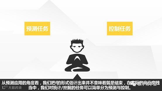 了解这一点后,我们还需要更加明确我们建立模型的应用目标,这将很大程度上决定了我们选择什么类型的模型。一般在商业实践当中,我们可以把统计/挖掘任务简单划分为预测和控制。