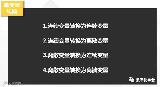 (1)连续变量转为为连续变量:如出于计量和比较进行转换,如转换单位:通话小时数->通话分钟数的;出于对数据分布修订的转换,如:对数据对数转换;为了使不同量纲或者不同数量级的数据能够很好地进行对比,对数据标准化(原始值-平均值)/标准差,一般在聚类的时候,对数据先进行标准化也是一种必要手段;