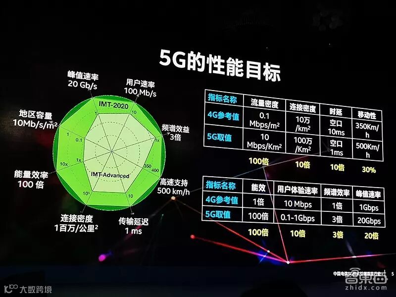 他先是给出了5G的几个目标性能,也就是5G时代来临之后我们能得到什么:
