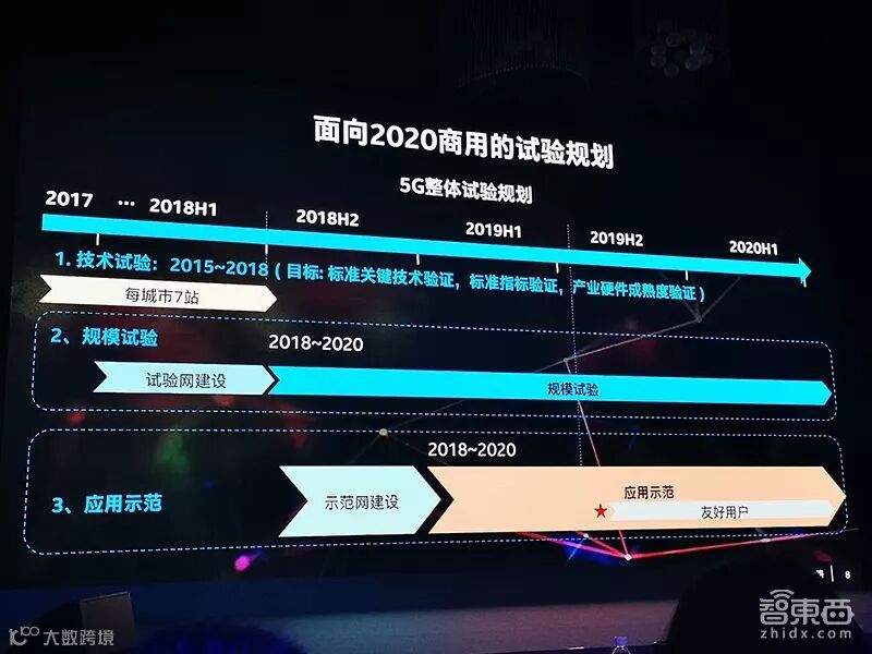 2)2018-2020年,这是5G的规模试验阶段,目前移动在上海、杭州、广州、苏州、武汉这5个城市都安排了至少100个站进行试验,属于更大规模的5G示范网建设;