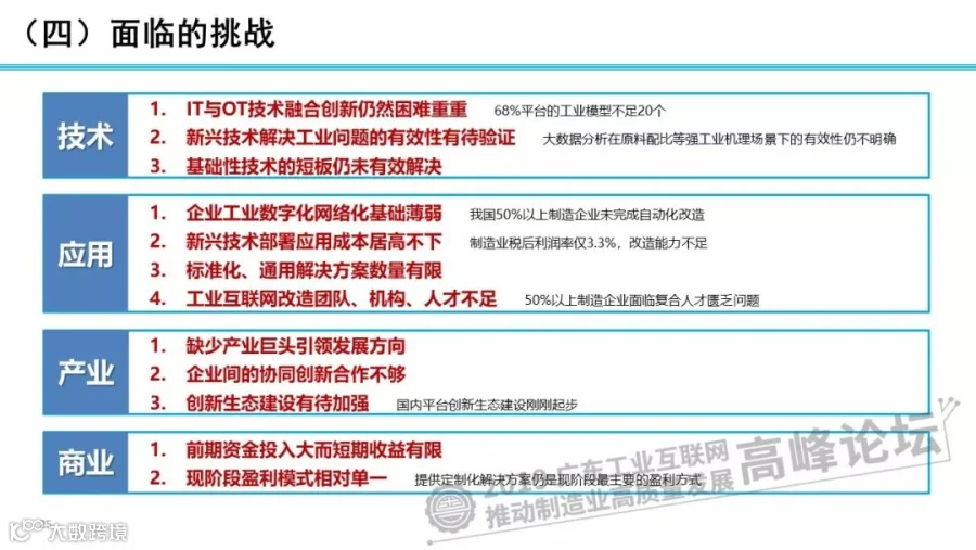 广东省数字化学会本文来自中国信通院余晓晖的演讲PPT,分别从中国工业的数字化转型需求、业务需求,以及工业互联网参考架构、应用探索等方面展开论述,并深入分析了极具中国特色的工业互联网实施路径以及在垂直行业中的应用创新。同时,还介绍了网络、平台和安全三大体系的演进和技术创新,深入浅出做了介绍。