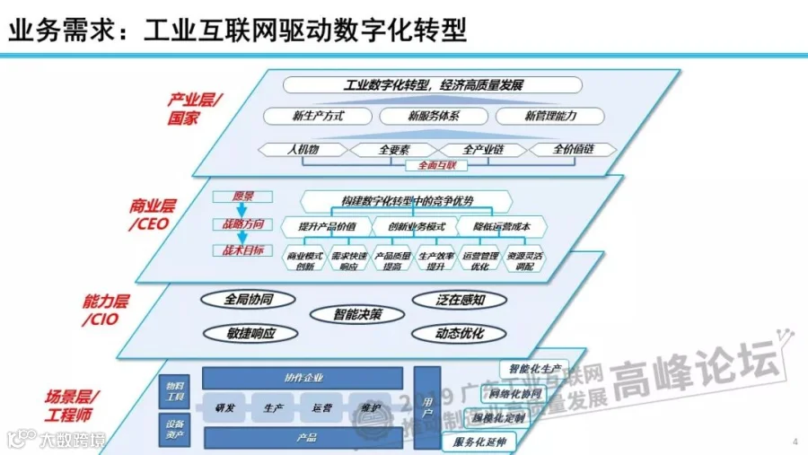 本文来自中国信通院余晓晖的演讲PPT,分别从中国工业的数字化转型需求、业务需求,以及工业互联网参考架构、应用探索等方面展开论述,并深入分析了极具中国特色的工业互联网实施路径以及在垂直行业中的应用创新。同时,还介绍了网络、平台和安全三大体系的演进和技术创新,深入浅出做了介绍。