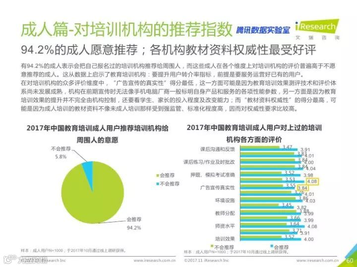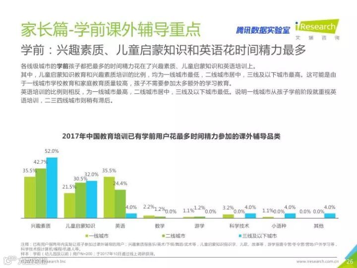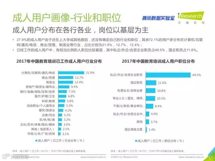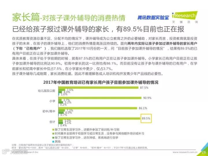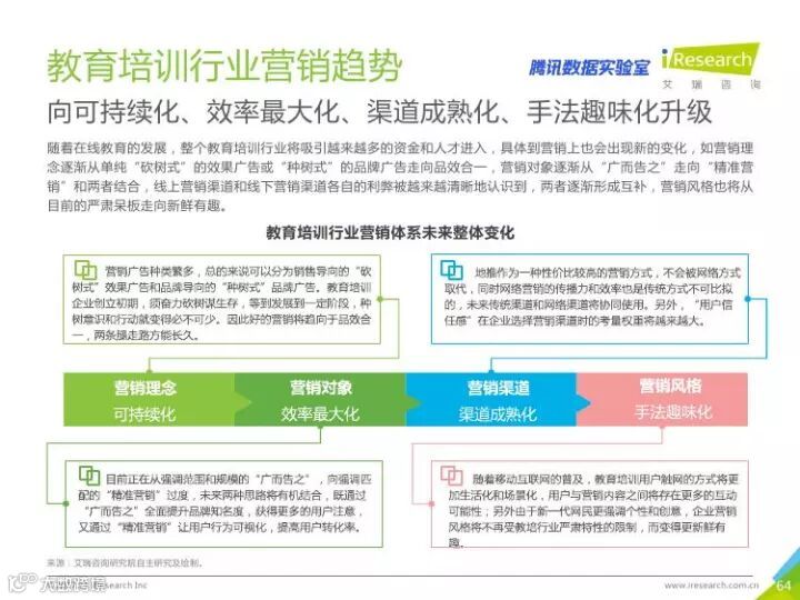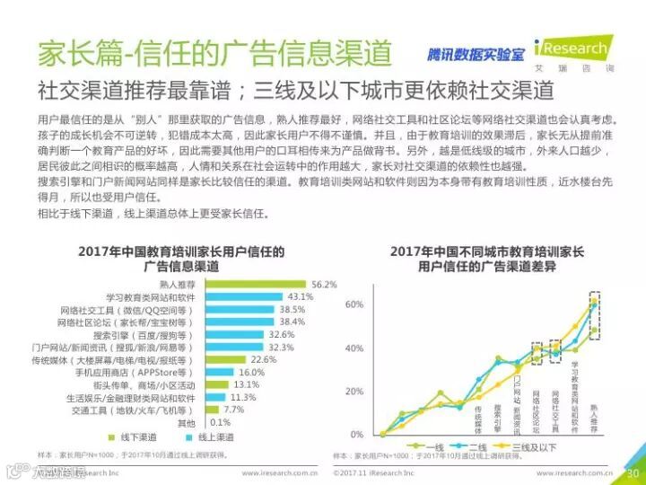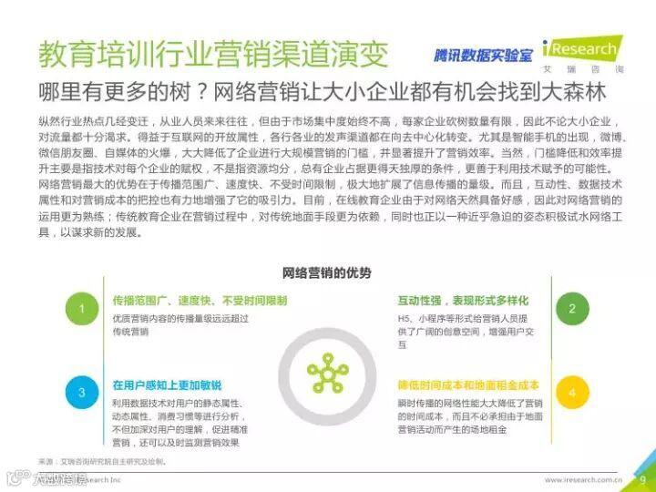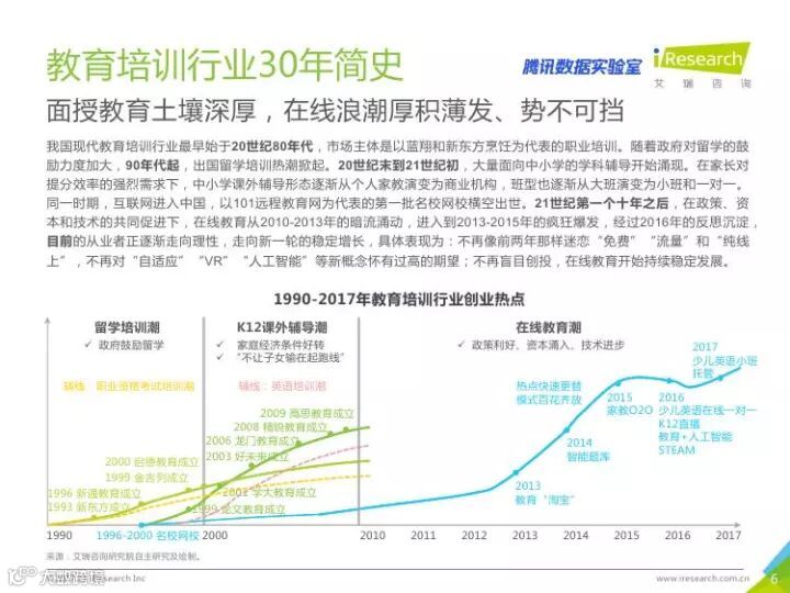 由腾讯数据实验室和艾瑞咨询联合发布的《2017年中国教育培训行业白皮书》梳理了教育培训行业30年发展简史,总结了各企业进行互联网营销、互联网运营的思路及手法,并以用户研究为重点兼基准,探讨行业未来的发展趋势。