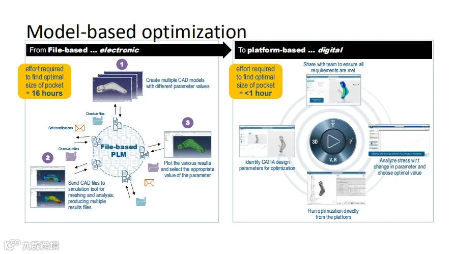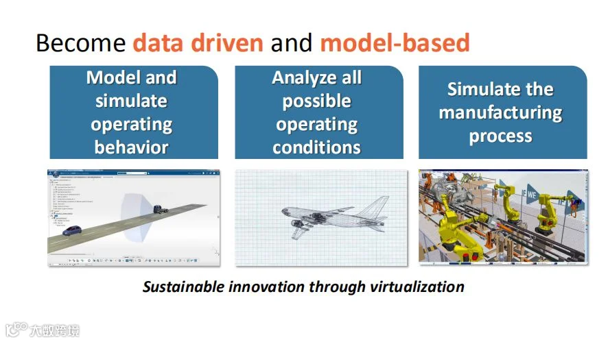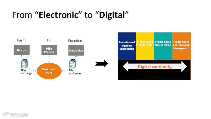 Model Base/Data Driven”(以模型为核心/数据驱动)是数字化转型的基础和关键,吴先生从实际案例、底层技术实现、未来愿景等维度展示对“数字化”的理解,说明“数字化”与传统“电子化”的本质区别,“数字化”的技术特点及正在给企业带来的业务价值,并通过产品数字化使能面向未来的数字化制造和数字化营销。