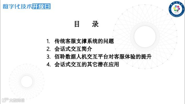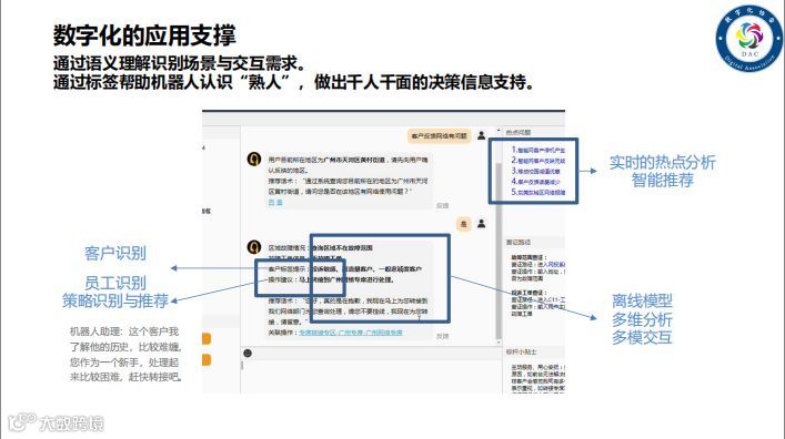 郑午先生介绍了一种新兴的智能人机交互方式--对话式人机交互。具体阐述了目前对话式交互机器人的分类,不同的技术实现方式,以及存在的问题。并以运营商客服支撑系统为切入点,介绍了佰聆数据如何通过对话式人机交互平台,提升运营商客服中心的客户体验,提高客服人员的工作效率,以及如何规避当前对话式交互技术的技术瓶颈。同时,郑午先生还对对话式交互未来的应用推广作了展望。