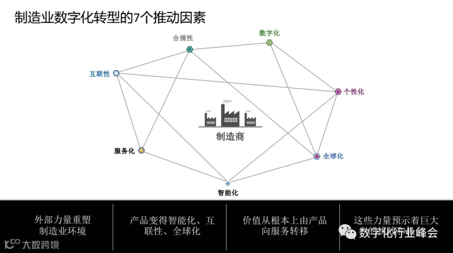 未来的世界是一个智能互联的数字化世界,制造业企业都面临着数字化、全球化、个性化、智能化、合规化、服务化、互联化的挑战。