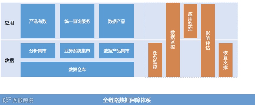 数仓开发本身要解决的核心问题是质量和效率 (所有开发也都需要解决),无论是质量和效率都需要好的架构设计。北斗 - 数仓设计管理系统就是来完成数仓设计。数仓的开发原本总是非常的经验化,很多知识都是存在数据开发的脑子里。我们通过北斗 - 数仓设计管理系统来推行数仓先设计再开发,通过北斗 - 数仓设计管理系统将数仓开发的经验知识化、标准化、工具化。数据质量中心 (如下图所示) 提供全链路的数据保障体系,提供任务监控、数据监控、应用监控、影响范围评估和恢复的支撑。
