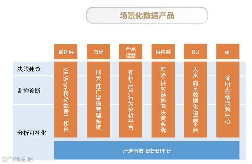 数据中台的上层就是数据前台,主要包括 BI 报表、数据产品和业务系统。数据中台首先赋能分析师通过 BI 报表的形式来驱动业务精细化运营。如下图所示,基于数仓里已经半加工好的数据,分析师使用严选有数敏捷 BI 平台可以快速的根据业务需求进行数据可视化和数据分析。严选有数现在每周的 UV 超过 800,每天报表浏览次数超过 12w,目前的图表数超过 7W。对于一个事业部级的 BI 平台,应该算是一个非常好的成绩。这里特别感谢下我们的分析师团队,她们的辛勤工作才会有这样的成绩。