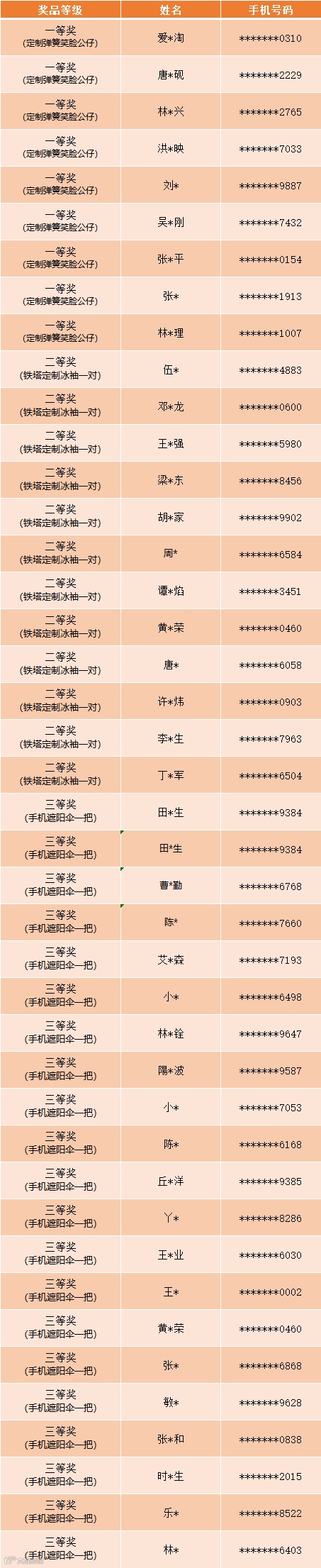 小铁这就公布中奖名单