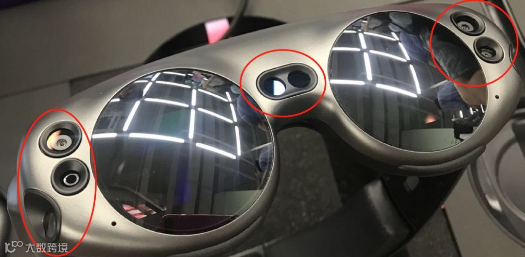 上图中,左边那玩意儿是遥控器,中间的是头显,右边是处理器 。