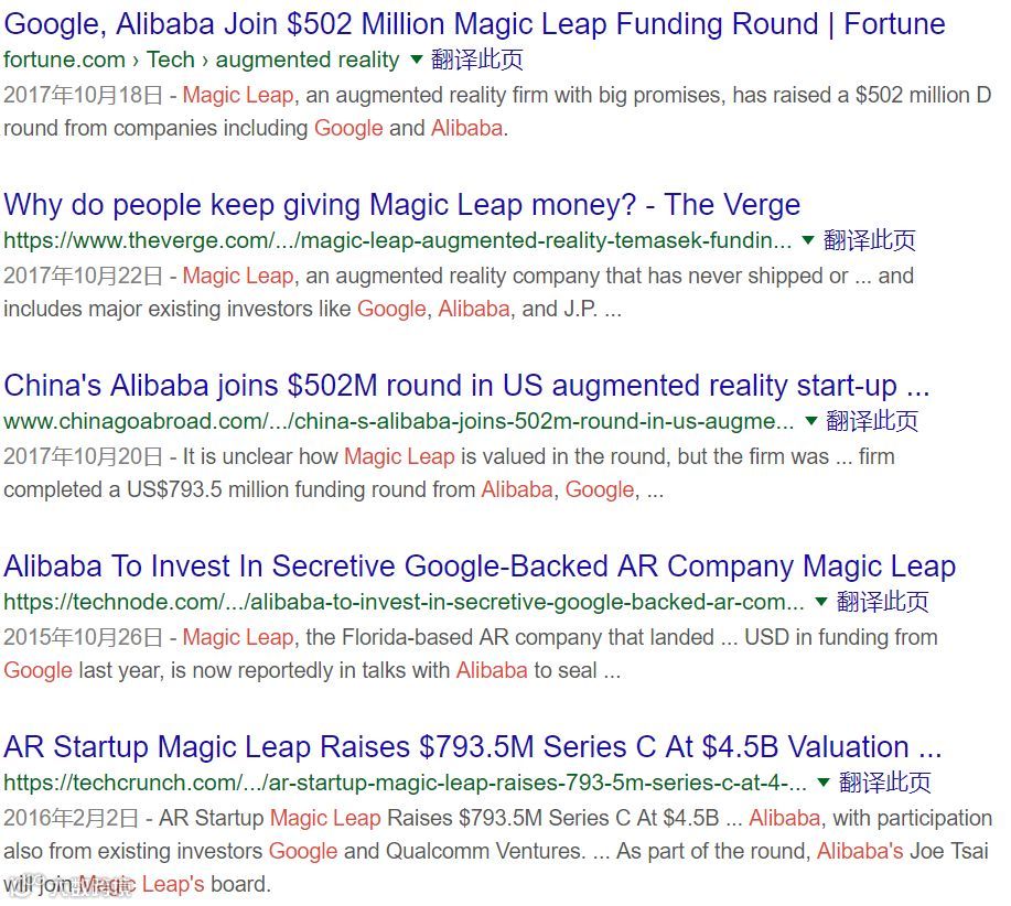 Magic Leap 还楞是拿到了各种投资,2016 年的时候估值达到了 45 亿美元,投资者甚至包括谷歌和阿里巴巴这种科技巨头。