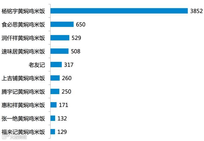 目前黄焖鸡米饭品牌有200多个,其中杨铭宇黄焖鸡米饭作为行业领头羊,单品牌门店多达3852家。除去这一类加盟品牌之外,也有人选择不加盟自创品牌经营。