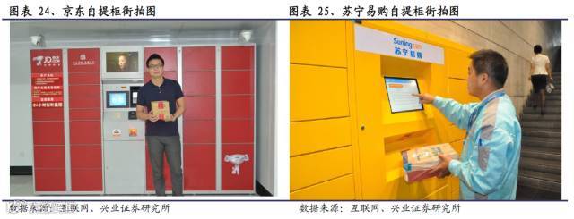 京东、苏宁两家电商巨头所开发的自提柜,可以说是电商系智能快递柜的代表。