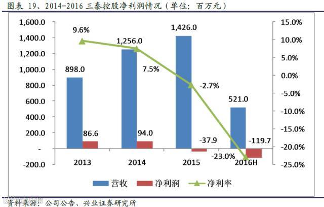 从净利润角度来看,自2013年三泰控股开展速递易业务以来至2016年上半年,其净利率分别为9.6%、7.5%、-2.7%、-23.0%。