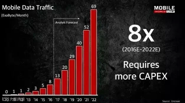 尽管ARPU在下降,智能手机接近饱和,但是,数据流量需求却在急剧上升,这意味着运营商的资本开支(CAPEX)将上升。