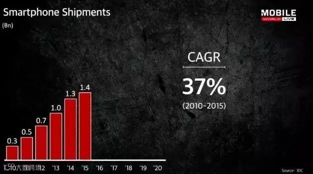 过去5年,智能手机的复合年均增长率(CAGR)为37%。