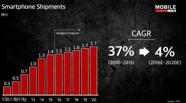 不过,未来5年,智能手机的CAGR只有4%。这让人非常沮丧,不是吗?