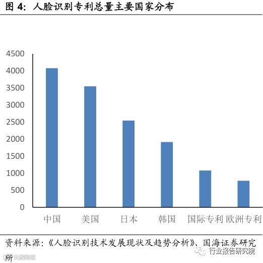 从目前累计专利数量来看,我国人脸识别公开专利已达4000多例,明显多于其他国家和地区。技术实力的显著增强也为国内市场打开,商业化产品的迅速普及打下了坚实的基础。
