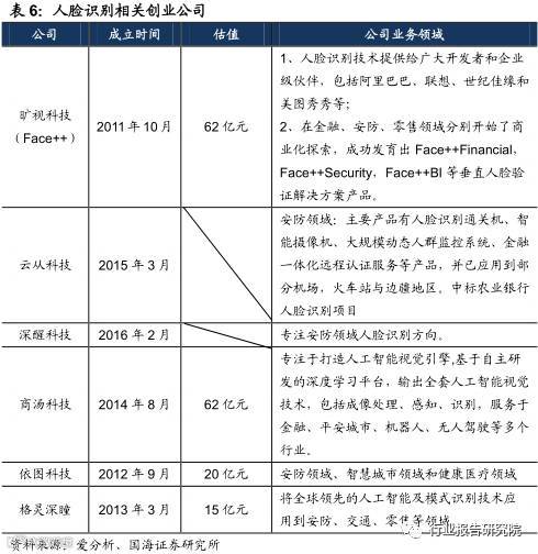 在人脸识别技术得到突破的同时,首先在人脸识别方面涌现出了一批明星创业企业,创业企业凭借领先的技术优势率先对商业模式进行探索,对新兴市场进行开拓。