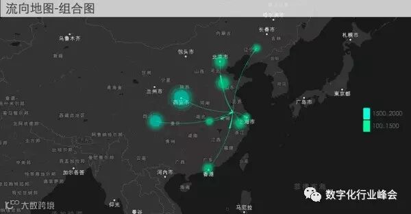 流向地图可应用于交通流向、人口迁移、购物消费行为、通讯信息流动、航空线路等场景,也可应用企业货物运输,供应链管理。