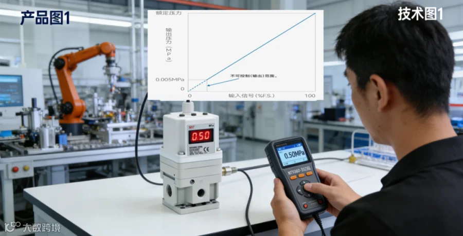 输入信号线性调节时,输出压力无线性变化、与设定值偏差过大(超出 ±6% F.S.),或压力波动明显,无法精准控压。