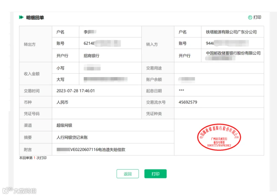 已向我司赔偿足额电池款项