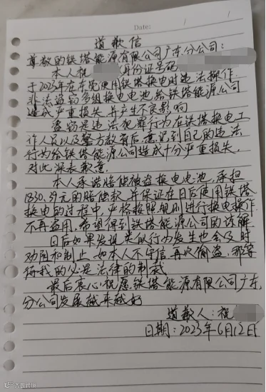 若要人不知除非己莫为!2023年3-6月,何某某连续3次盗窃中国铁塔电池,自以为严丝合缝,其实早已被铁塔换电工作人员盯上并暗中观察收集证据。
