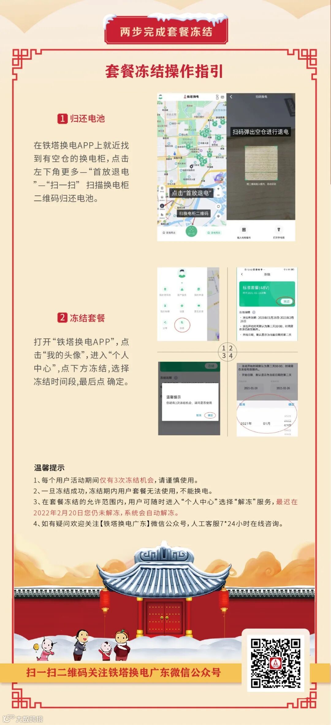 不用担心,铁塔换电套餐冻结服务即将上线,不用不花钱!