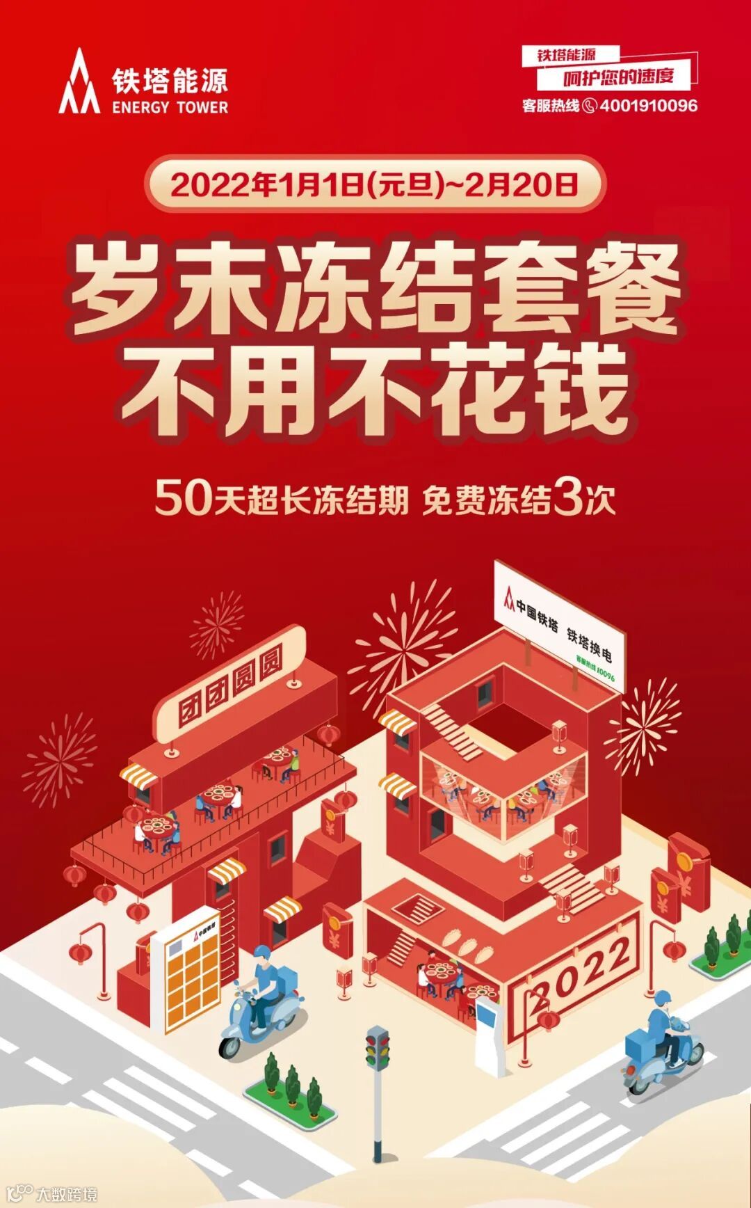 有了铁塔换电50天超长套餐冻结服务!