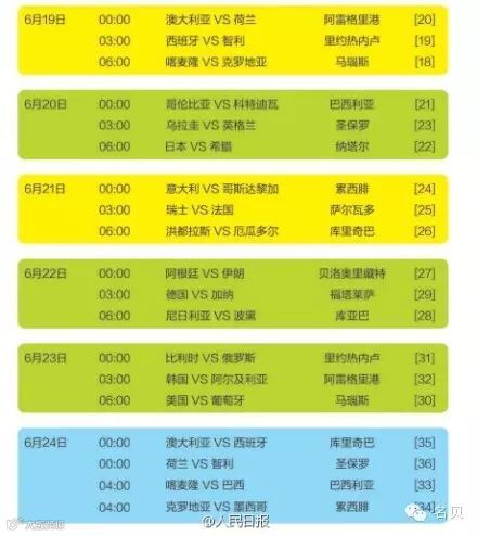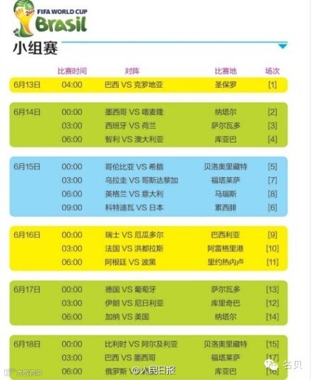 今天,为大家奉上2014巴西世界杯最全观赛时间表,为自己和身边爱足球的小伙伴们转发收藏吧,精彩赛事不容错过!!!