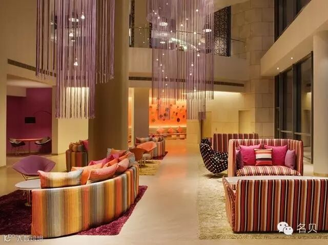 位于英国爱丁堡的第一家Missoni酒店,坐落于乔治四世大桥与皇家大桥交叉口,包围它的都是中世纪贵族的百年历史建筑,与周围建筑风情截然不同的是,跃动的色彩充斥了整个酒店内部,从餐厅到电梯,再到每一间客房,这里的色彩不是单调的喷涂,而是融入了装潢设计元素或者生活用品,使得一切都色彩斑斓却仍然看上去很高级时尚,同时不会觉得凌乱,反而多了一些优雅的设计感。