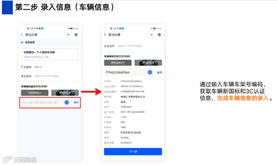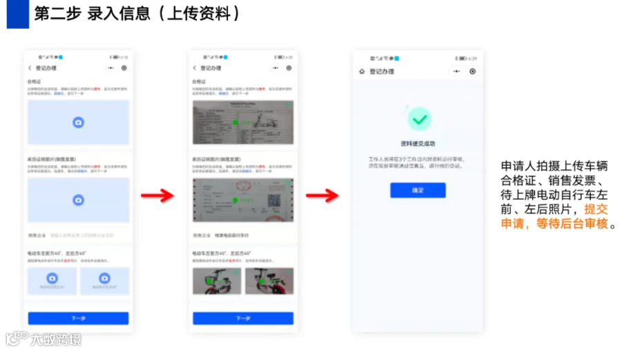 线上录入材料:个人身份证件、车辆合格证、销售发票、待上牌电动自行车;