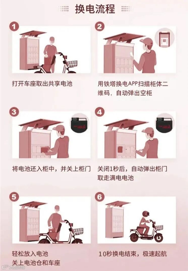 铁塔换电是以标准锂电池为载体,集移动物联网、云平台、深度检测算法、安全智能充电技术、GPS等技术、集低速电动车、电池、运营商为一体的智能管理平台,面向物流及外卖骑手提供低速电动车动力电池换电服务。