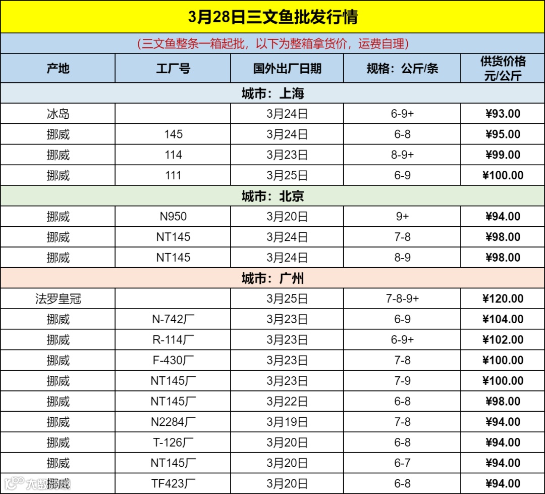 导读:【3.28三文鱼批发行情】