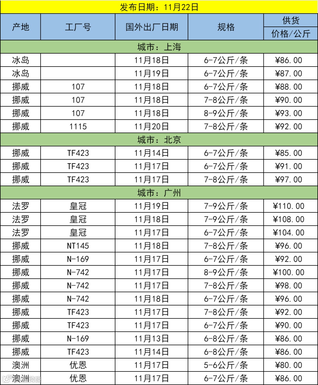 11月22日三文鱼批发行情(上海|北京|广州) 三文鱼批发行情