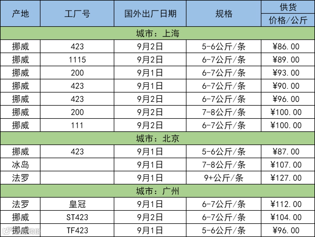 9月6日三文鱼批发行情(上海|北京|广州)